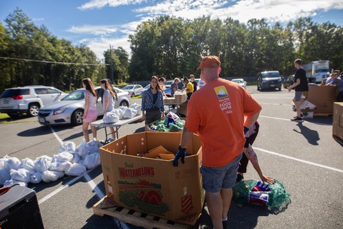 The Blue Ridge Area Food Bank sets up on campus on the last Thursday of each month. Our team helps organize volunteers and distribute food for the mobile food bank.
